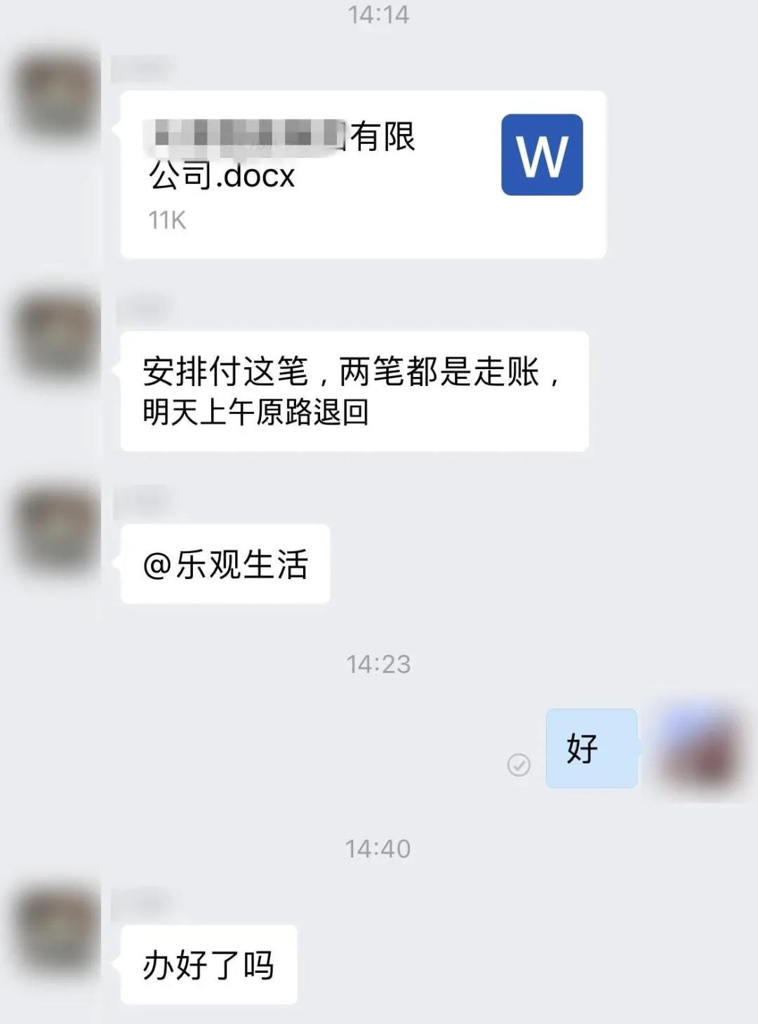 过了一会儿,“丈夫”又在群里发了一个转账信息,说这两笔钱都只是走个账,明天上午会原路退回。一下午就要把公司账上的钱全转走,沈女士感到不对劲儿,她马上打电话给丈夫,发现群里那个人根本不是她丈夫!