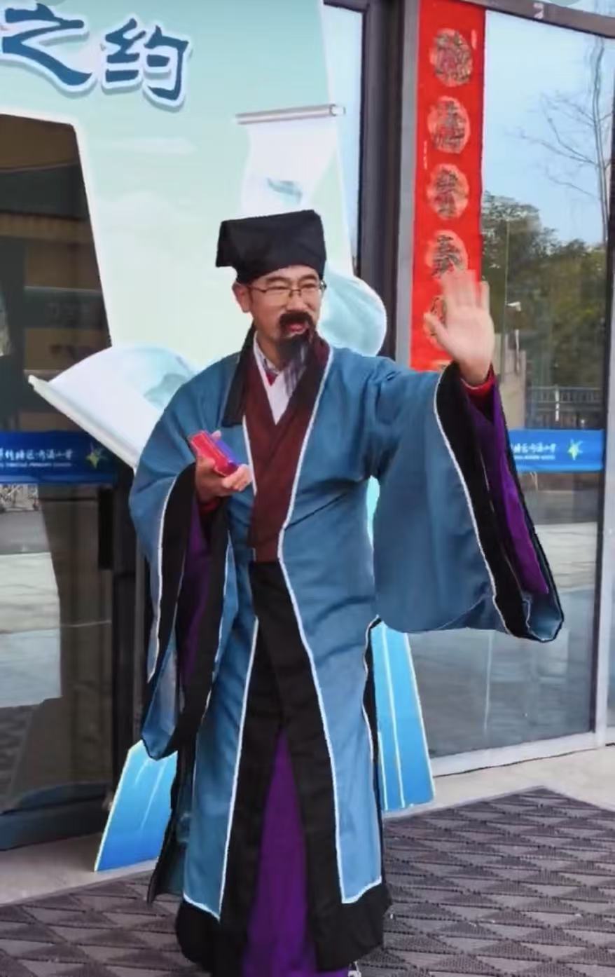 这次学生们要追的星是中国古代科技巨匠、《天工开物》的作者宋应星。陈通海副校长扮起了宋应星,向返校的孩子们发放“红包”。这些红包里不仅有听涛币,还藏着各种惊喜——可能是“一日同桌券”,也可能是“免寒假作业券”或“作业延时券”。