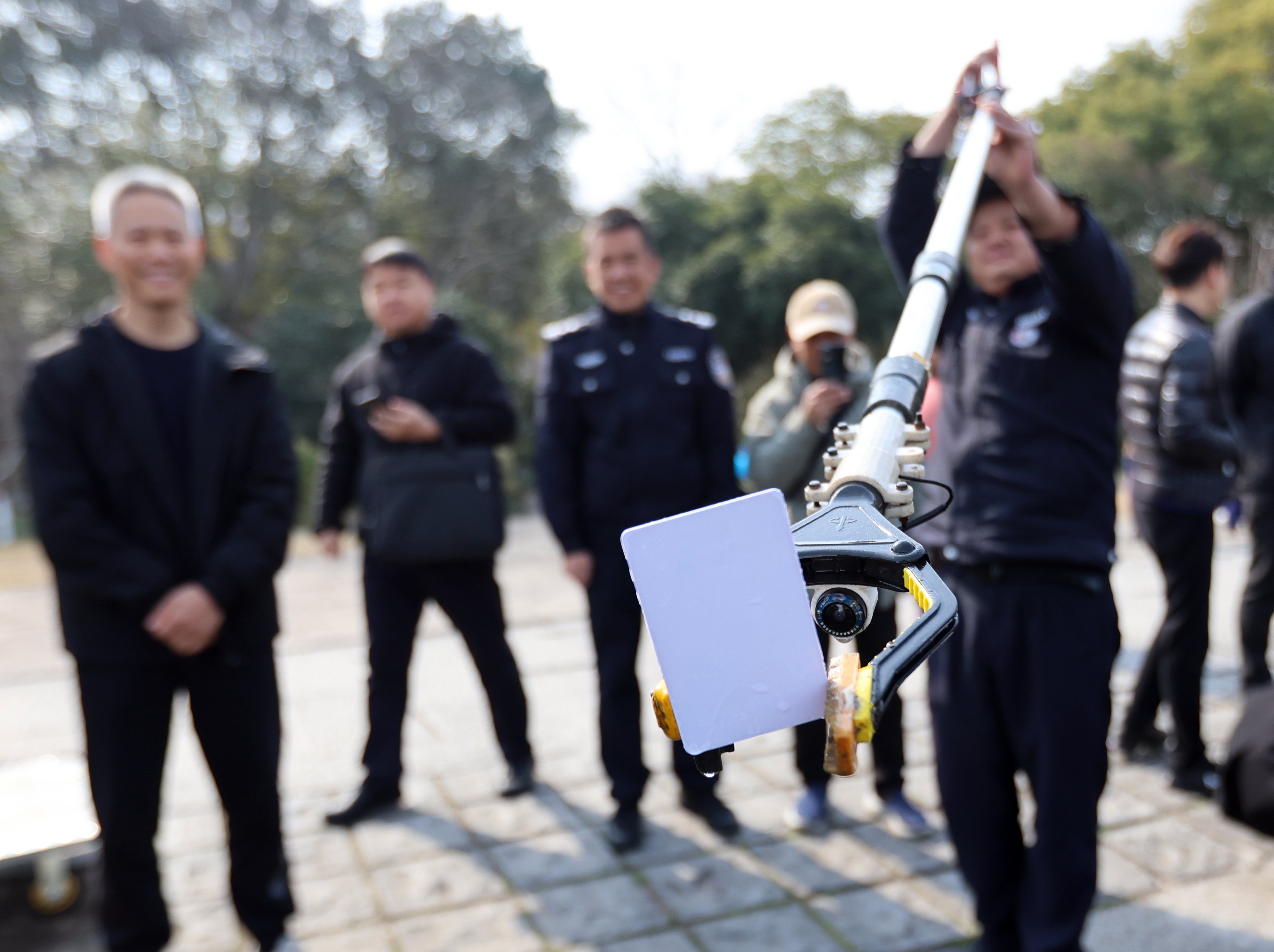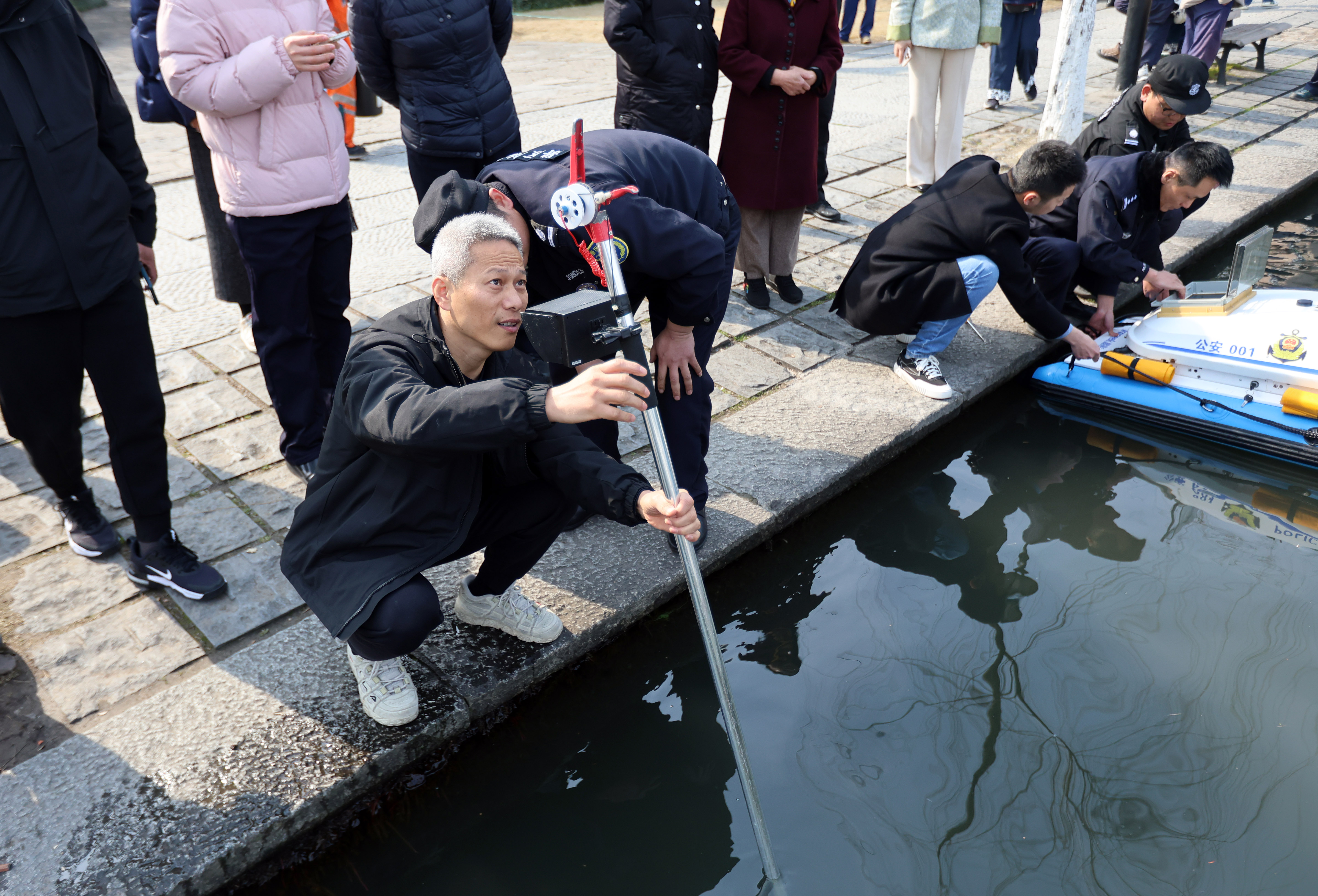 楼仁斌对西湖捞哥团队的打捞工具十分感兴趣,尤其是打捞杆。在西湖边,他进行了实验,尝试抓取打捞戒指。经过简单学习,他在三分钟内成功打捞上戒指及身份证。他介绍,自己辖区的河道水深一般在一米多到两三米,最深处四五米,而西湖捞哥团队最长可达5米的打捞杆,在这样的水域环境中或许能发挥重要作用。