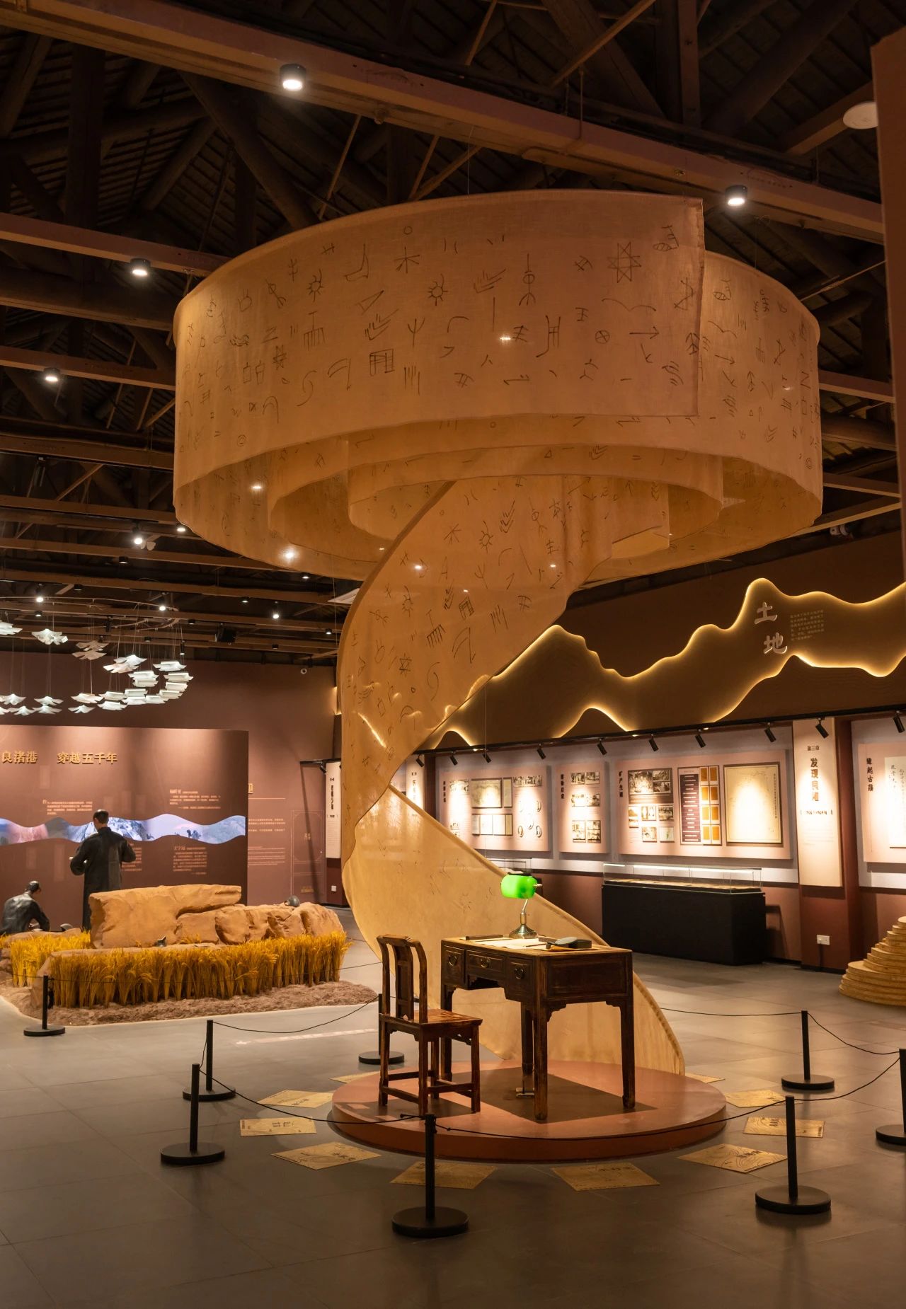 除个人生平展陈,正厅内还设有多个特色互动区域,市民游客可以在话剧观影区欣赏话剧《施昕更:良渚1937》,感受艺术与历史的交融;能在布满金黄麦穗的考古发掘区近距离接触考古工作,了解良渚黑陶文化;还能在“未来之问”区体验时下最流行的数字人科技,用普通话甚至是良渚方言,与施昕更进行一场跨越时空的“对话”。