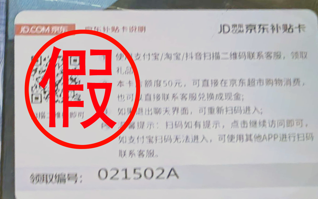 就在新家电陆续送上门的时候,一份标注着“京东购卡补贴”的快递也被送进了张女士的家。就是这张广告纸,险些骗走了张女士24万元。
