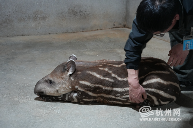 这只出生在去年12月29日的南美貘宝宝,体重已经较出生时增长了近3倍,活力十足。它满身的棕白条纹,与父母的棕褐色皮毛形成鲜明对比,格外引人注目。