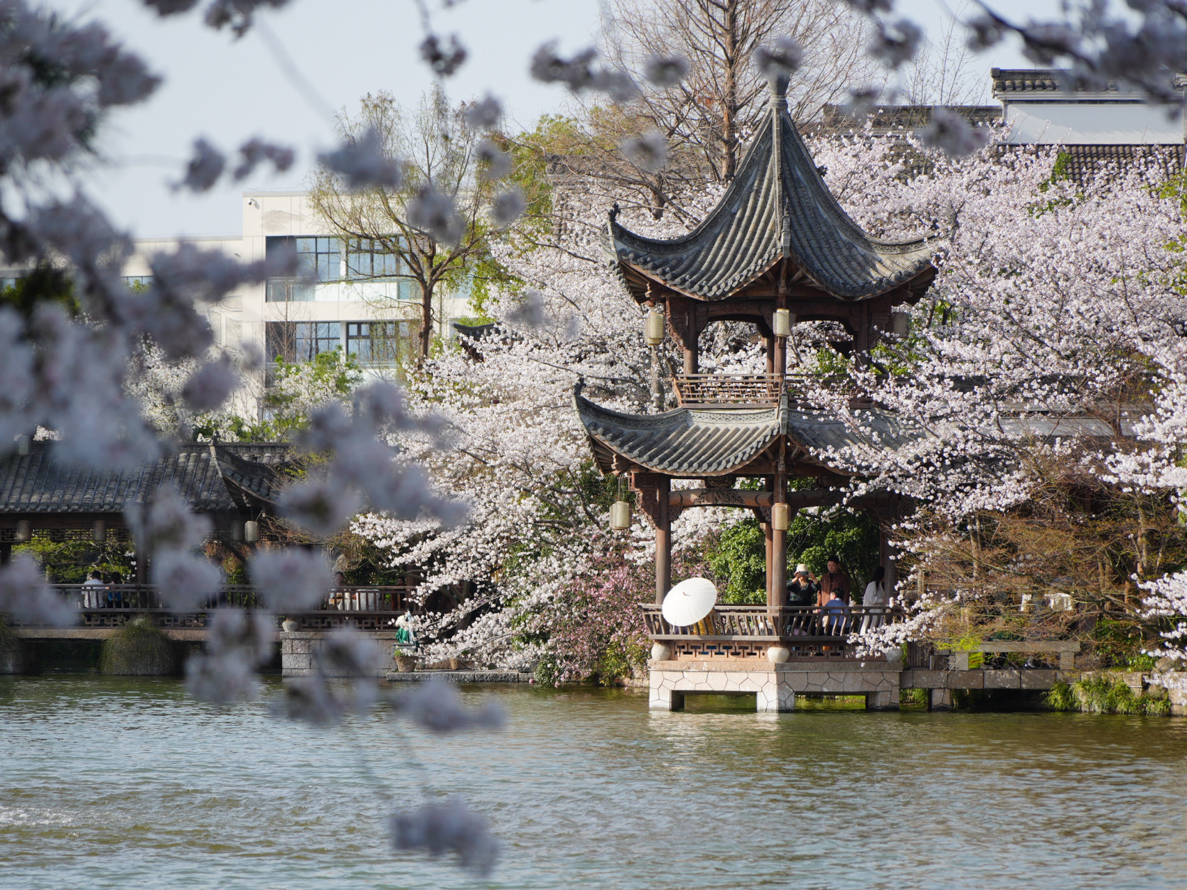这两天温度直线上升,昨天(3月24日)已经突破30℃,梦溪苑内樱花也不甘示弱抓紧时间盛放。