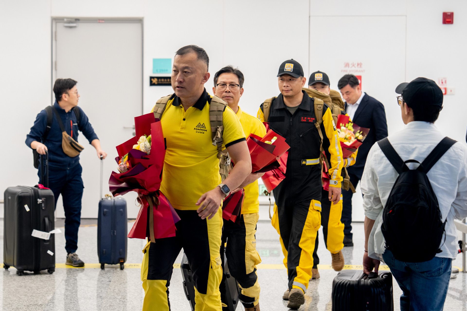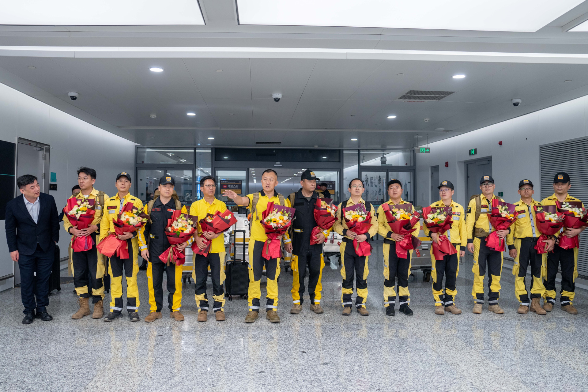 当天晚上9点多,公羊救援队一行人乘坐的飞机顺利降落杭州萧山国际机场。