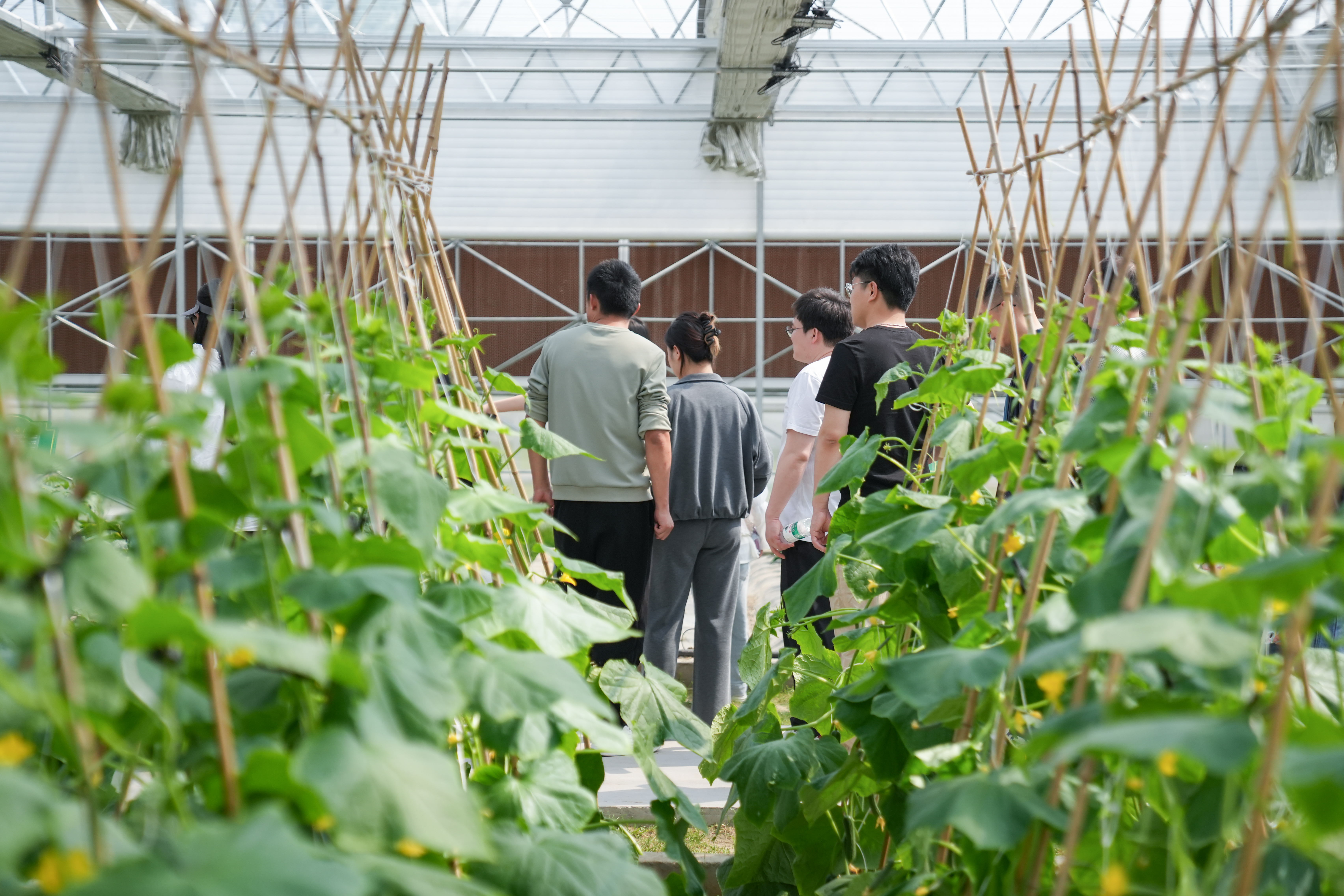 穿过未来工厂,田立方·临平未来农场的“太空舱”大棚又让人眼前一亮。银白色的拱形棚顶下,一人多高的黄瓜藤沿着支架攀爬,长出的叶子能比人脸还大。“这些农作物的种子坐过神舟飞船呢!”讲解员小青够了够高过肩头的水稻苗,“太空育种就像按下基因‘加速器’,能让种子基因发生重组、突变。拿太空南瓜来说,单体重量可达100~200公斤,顶一头老母猪了。”