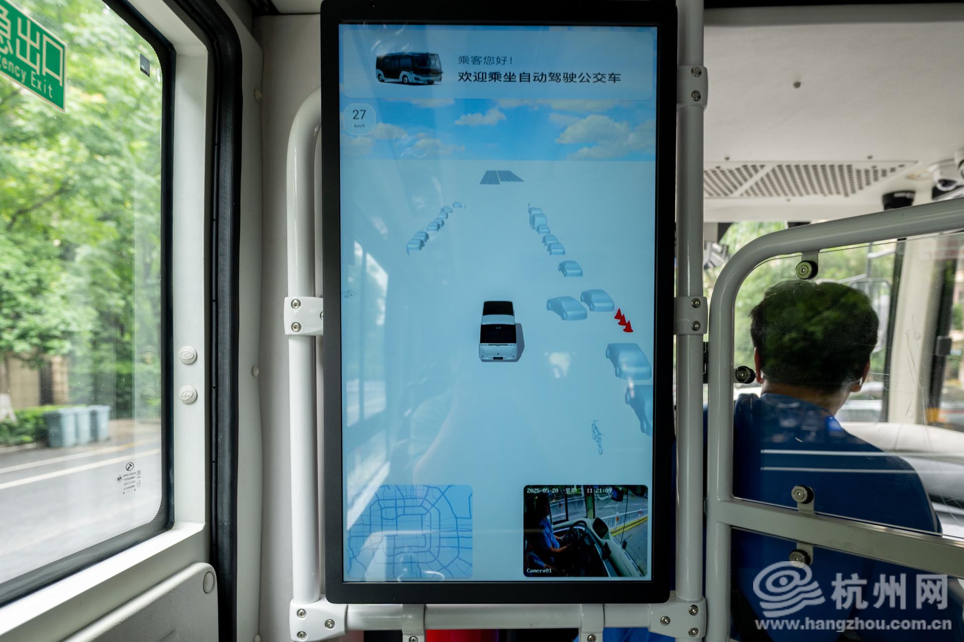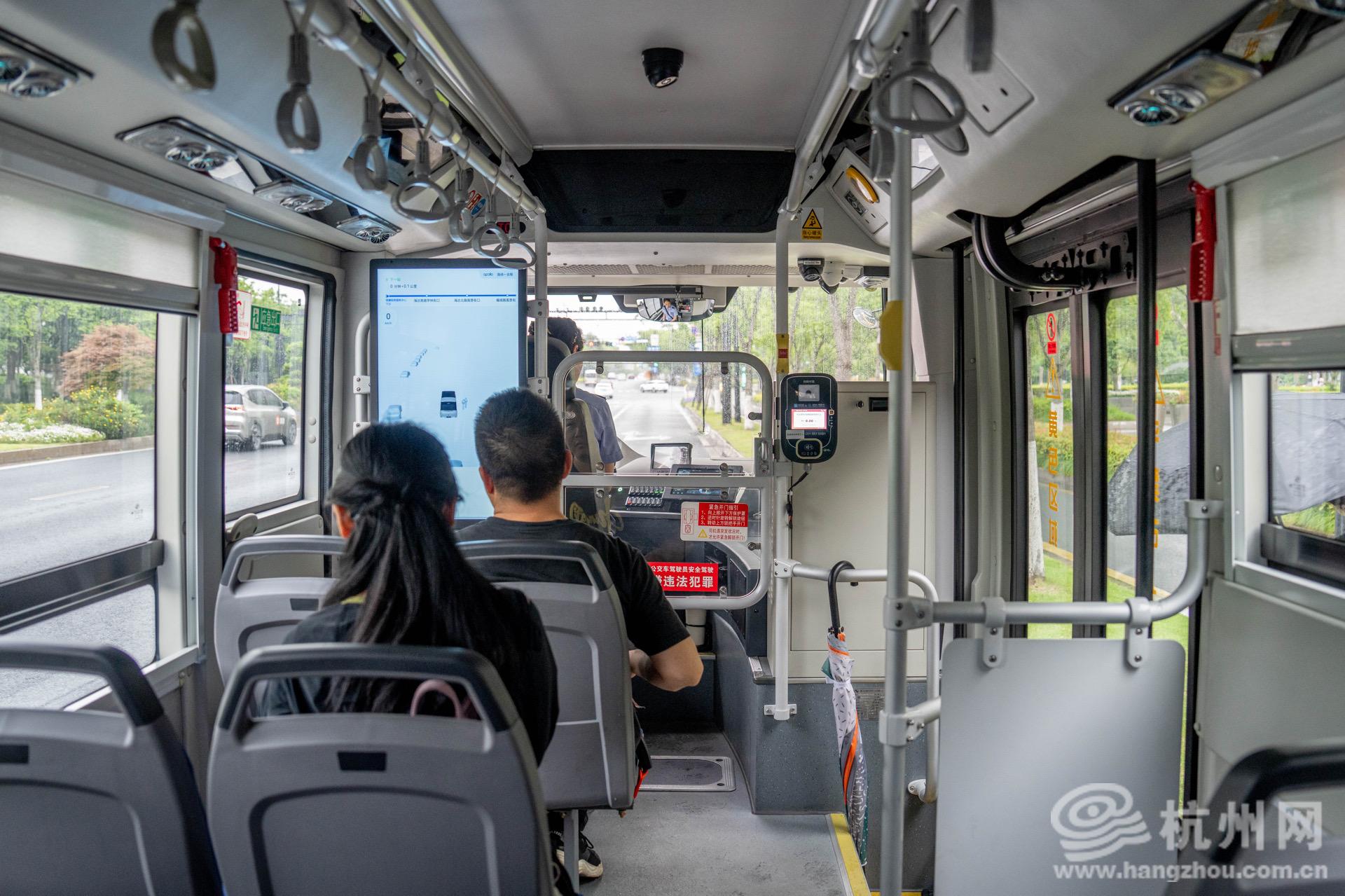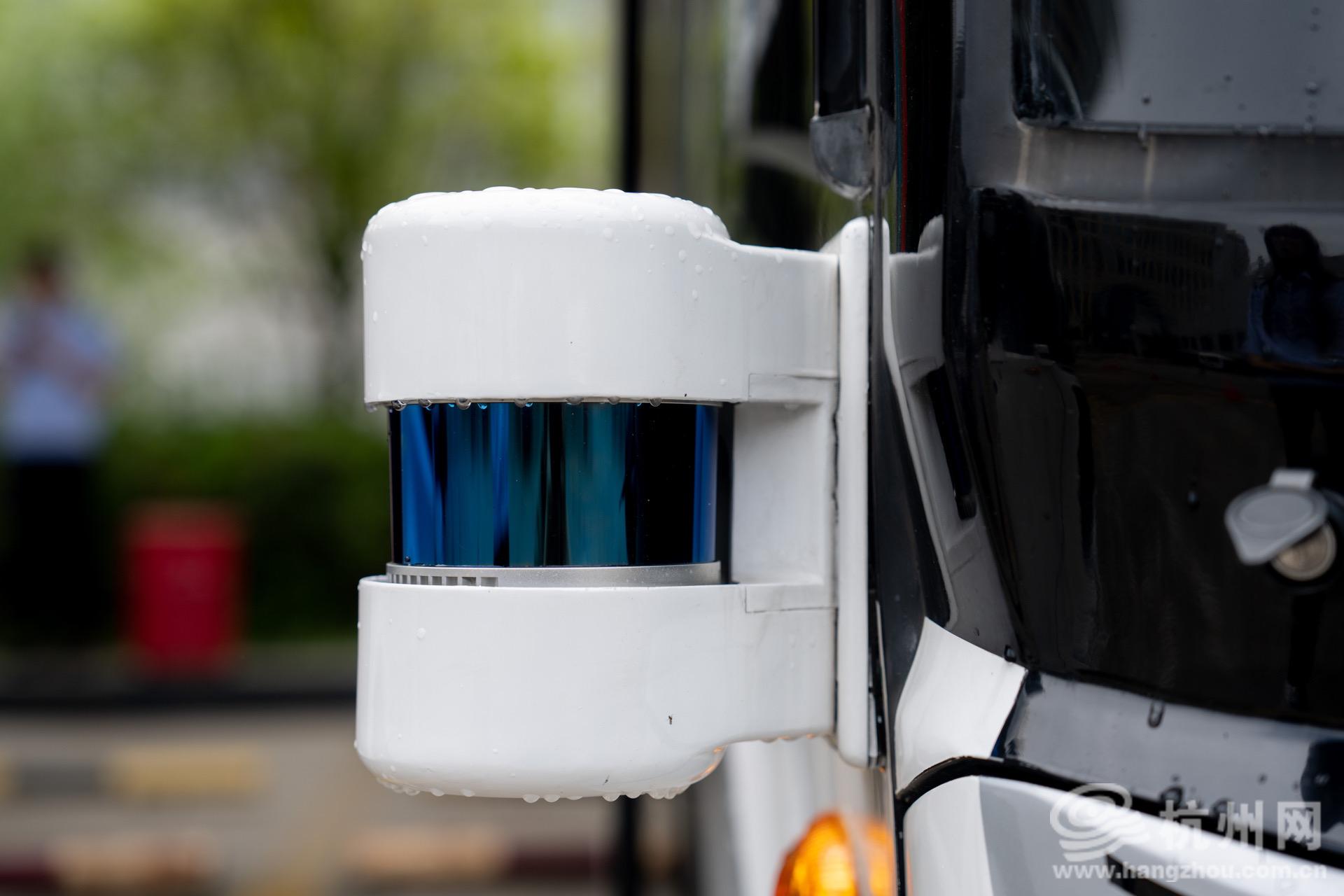 5月20日,杭州网记者前往钱塘区实地体验乘坐自动驾驶公交车。现场,记者看到,与普通公交巴士有所不同的是,该车辆最明显的特征是周身布设多种感知设备,包括4个激光雷达、2个毫米波雷达、7组高动态范围相机模组,可感知车辆周边200米左右环境,预测车辆、行人的行为和意图,做出适应环境状况的行车决策,从感知到控制整体响应水平可达到毫秒级。