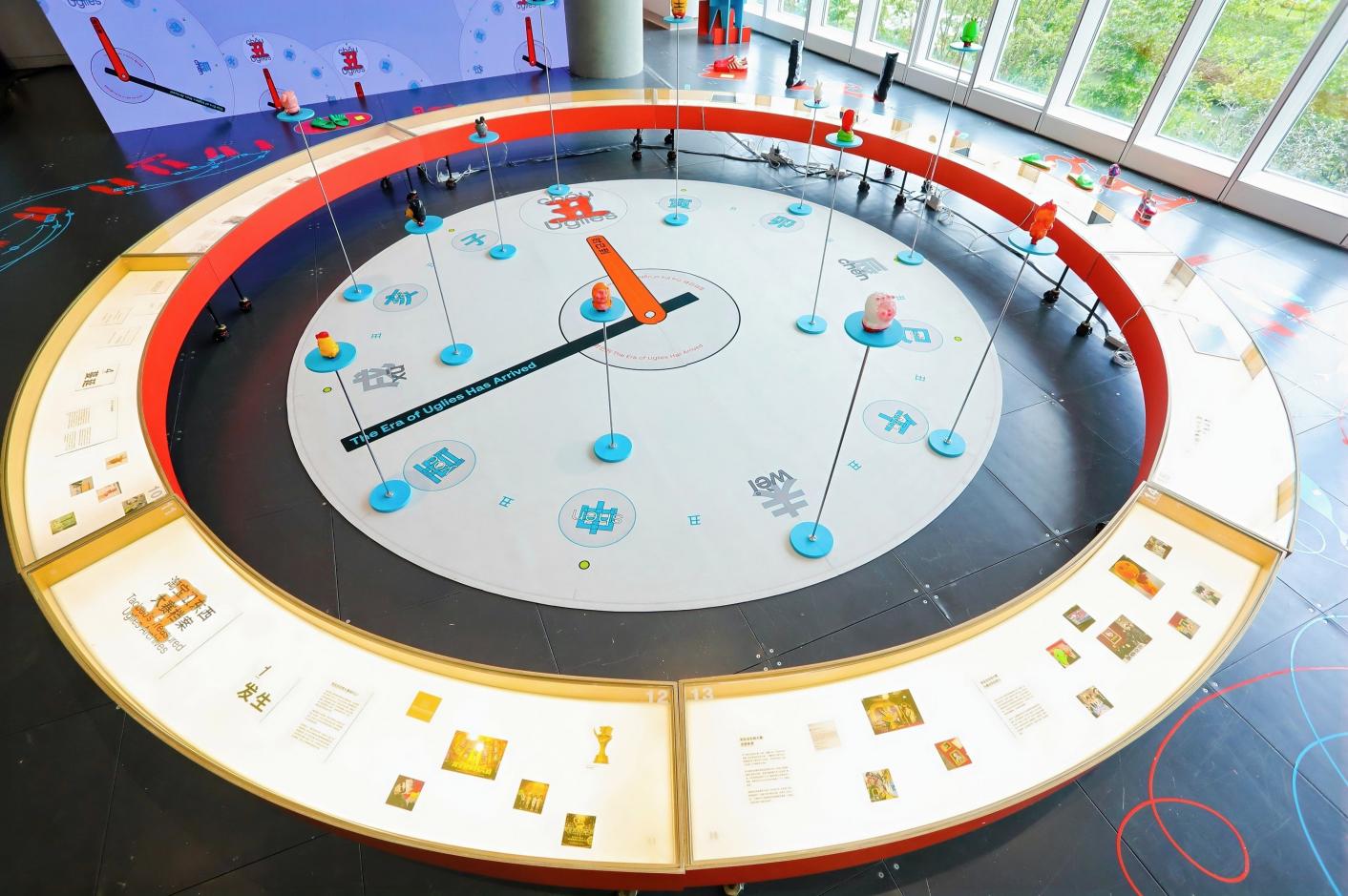 7月29日,淘宝首届丑东西线下展在杭州天目里16号楼3楼“丑术馆”拉开帷幕。刚走进展厅,一个巨型时钟装置便映入眼帘——指针稳稳停在“丑时”,周边十二时辰时区对应着第五届丑东西大赛的十二生肖获奖玩偶,瞬间把人拉进这场关于“丑”的独特狂欢。