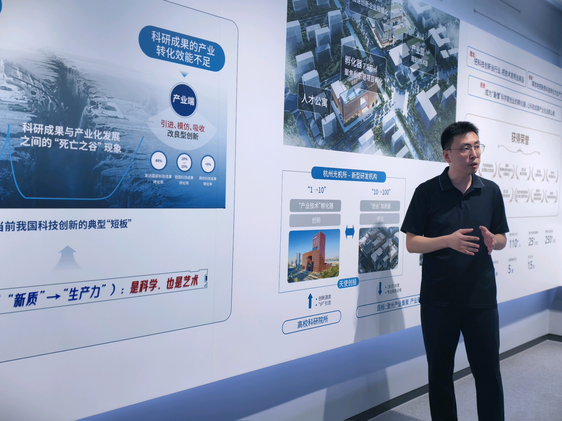 每年,杭州光机所会收到全国300多个项目,从中筛选出10个左右兼具重大科学价值与明确市场场景的优质项目重点培育。南京信息工程大学教授夏海云落户杭州4个月来,其创立的光在科技已完成了新一轮融资。在杭州光机所的帮助下,企业聚焦低空经济、应急管理、低碳环保领域,快速形成标准化产品矩阵并建成生产基地。“数十名年轻科学家扎堆创业,这样的氛围别处难寻。”夏海云感慨,杭州光机所主办的中科神光科创CEO特训班让科学家们互通有无,彻底打破企业“单打独斗”困境。