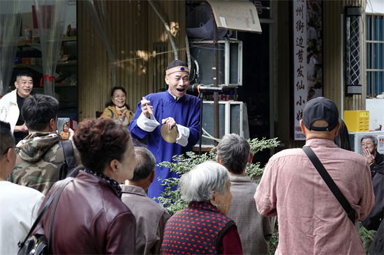 今年的瓦肆文化节,就藏在这些街巷肌理里。从9月底开始,游客走进巷弄,或许会在荟贤亭遇见弹琵琶的艺人,在状元井边撞见变古彩戏法的师傅,在十五奎巷和“宋代酒保”猜拳互动。葛希说,这些看似零散的布置,实则是复刻南宋“瓦舍勾栏不夜天”的市井场景。