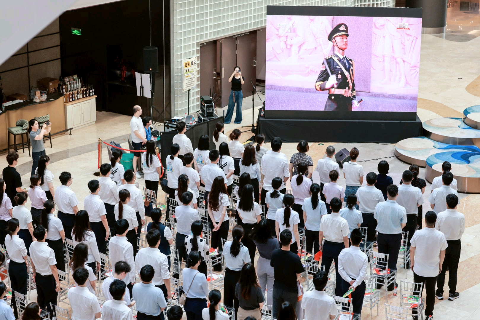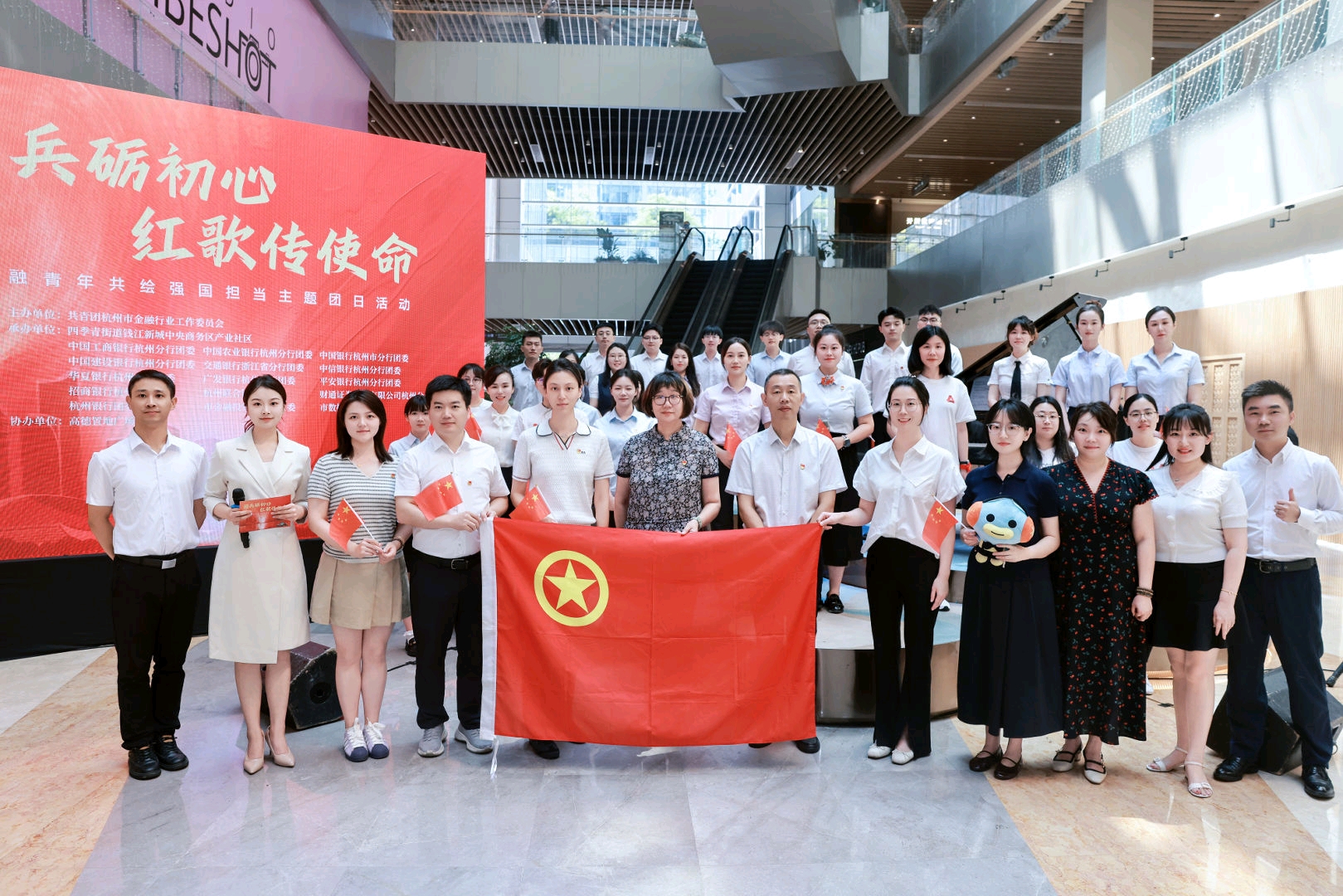 为纪念中国人民抗日战争暨世界反法西斯战争胜利80周年,深化金融系统青年思想政治引领,共青团杭州市金融行业工作委员会于9月3日组织全市金融行业青年代表,在高德置地广场举办“阅兵砺初心·红歌传使命”主题团日活动。来自全市金融行业各条战线的百余名团组织负责人、优秀团员青年代表参加活动。