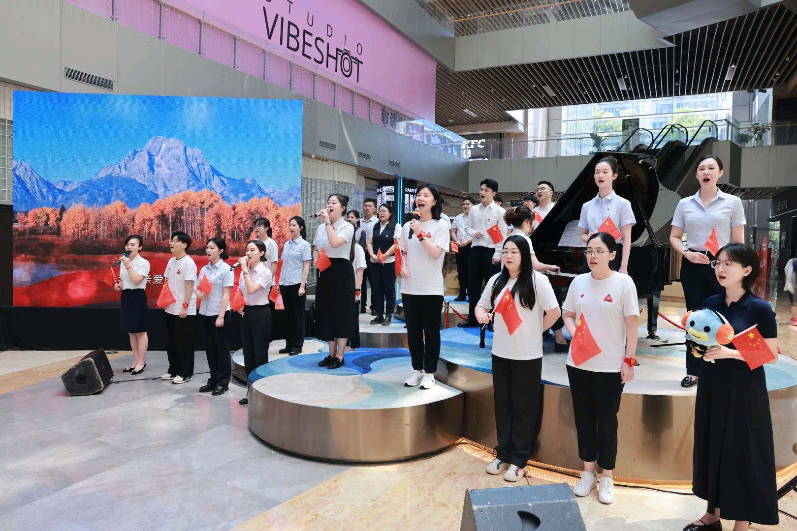 阅兵仪式结束后,“阅兵砺初心・红歌传使命”主题歌会随即拉开帷幕。杭州市14家金融机构的青年代表相继登台,深情演绎《我的入党志愿书》《我的祖国》《灯火里的中国》等经典曲目。歌会尾声,全体人员齐声高唱《我和我的祖国》,将现场气氛推向高潮。歌声中饱含对伟大祖国的深情祝福,也展现出杭州金融青年团结奋进的精神面貌。