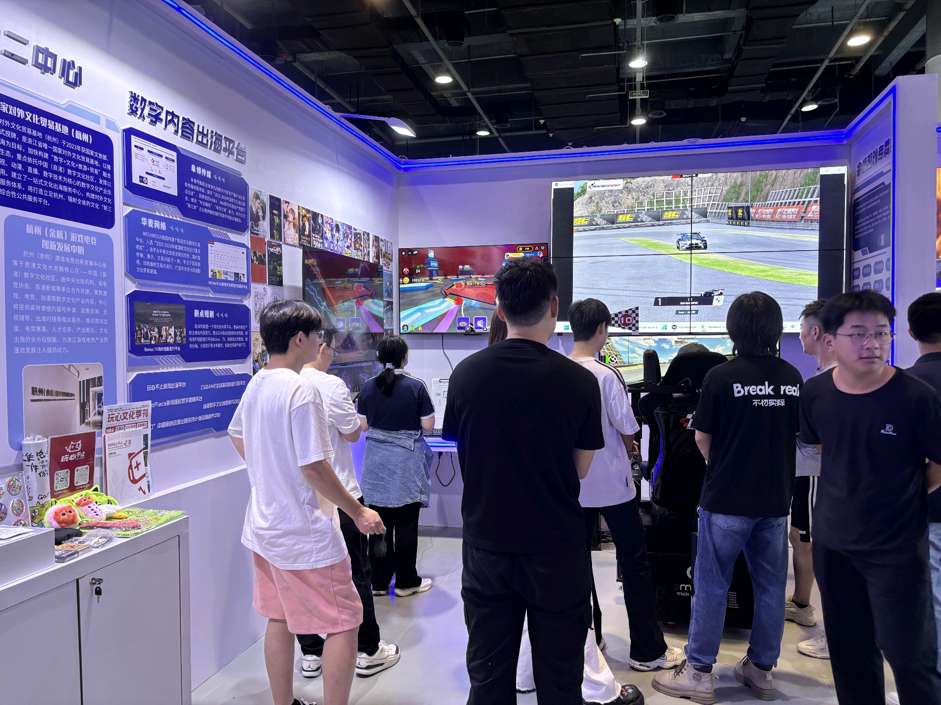 在余杭文化“新三样”展区,网文网剧网游精彩纷呈,国家对外文化贸易基地(杭州)、国家(杭州)短视频基地创作运营中心、杭州(余杭)游戏电竞创新发展中心构筑坚实的文化“新三样”出海平台。杭州(余杭)游戏电竞创新发展中心落地以来,引进拓能者科技、灼魂科技等游戏企业50余家,赛世电竞带来的模拟赛车体验引擎轰鸣,展示了游戏电竞产业与科技、文化融合的无限可能。