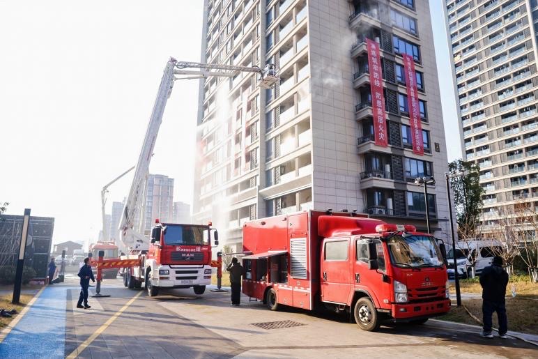 为进一步提升高层建筑火灾防范与应急处置能力,1月23日下午,杭州市钱塘区高层建筑火灾应急演练活动在沁贤里柚米社区举行。此次演练旨在通过实战化、场景化方式,全面检验应急预案、联动机制和救援能力。