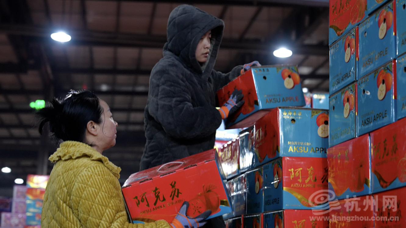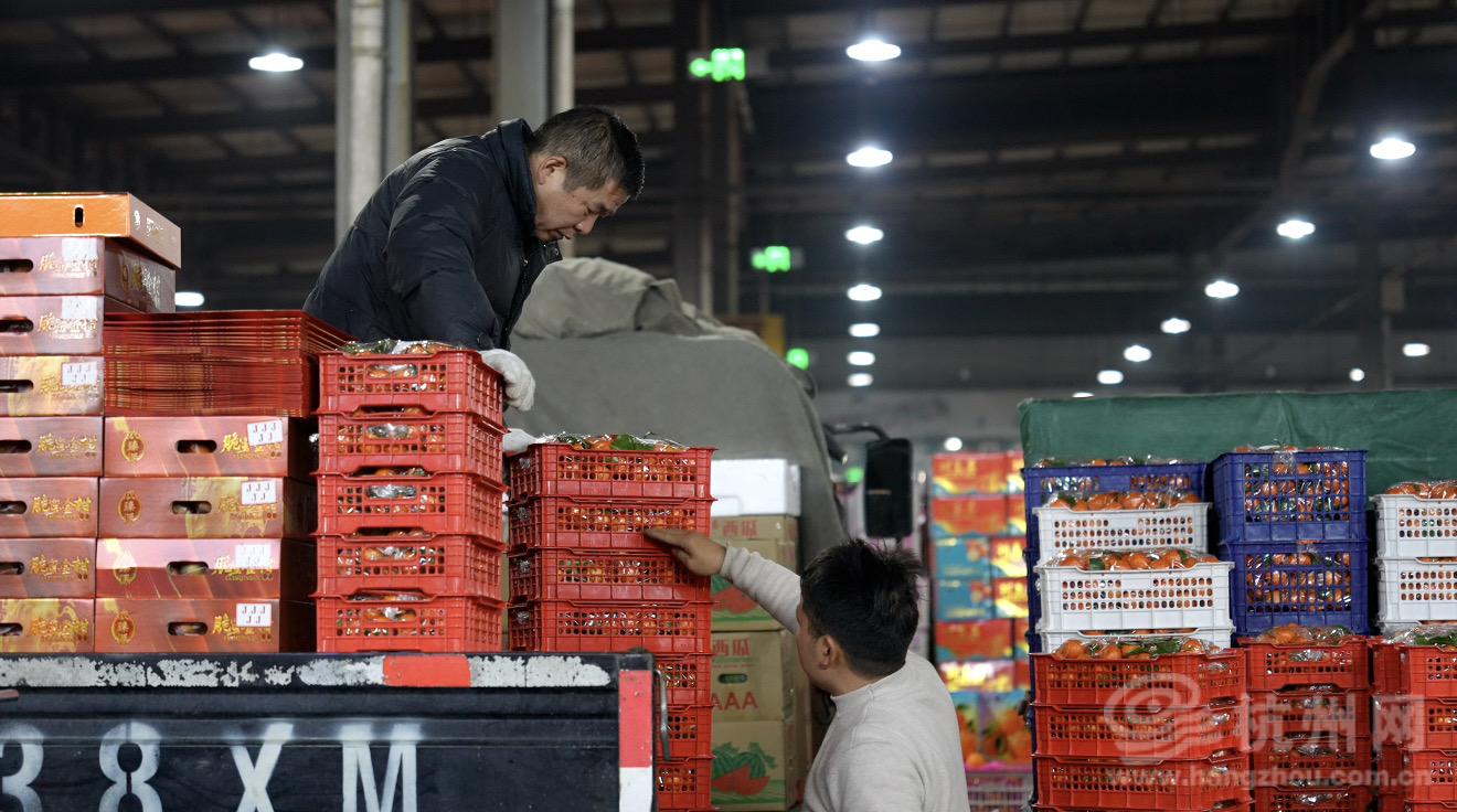 杭州果品批发市场,是华东地区最大的果品集散地之一。这里占地约200亩,400多家商户分布东、西两区。距离春节只剩几天,市场交易时间已从平时的凌晨2点至下午2点,延长至下午3点。