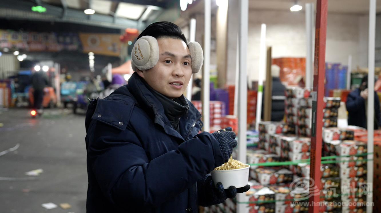 相隔三个摊位的广东小伙小江,答案却是“不回了”。26岁的他说话腼腆,却已在市场工作了6年。“买不到票,太远了。”他低头扒拉了两口坨了的面,语气轻松,却避开了眼神接触。“有时候想家就在被窝里哭……但是忙起来就不想了,真的!”他笑了笑。