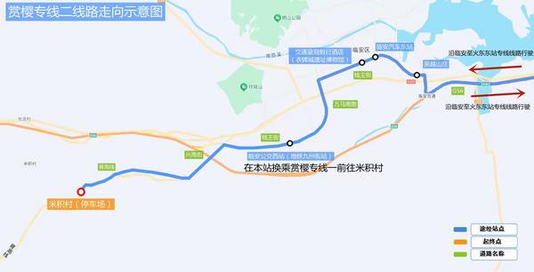 此次开通的赏樱专线分为两段,形成“主城直达+末端接驳”的闭环出行网络。其中,杭州火车东站西至临安公交西站的定制专线,途经新塘路、环城北路、天目山路、G56、钱锦大道、钱王街等主干道,串联艮新天桥北、武林广场北、庆丰村、古荡、汽车西站等主城核心站点,同时停靠吴越山庄、临安汽车东站、交通皇冠假日酒店(衣锦城遗址博物馆)等临安区域站点,最终抵达临安公交西站。该专线仅在3月7日、8日、14日、15日四个双休日营运,火车东站西始发班次为每日8:00、9:40,临安公交西站返程班次为每日13:10、15:00,全程票价17元,支付方式仅限各类移动支付及电子钱包。值得注意的是,购买该专线车票的乘客,可免费换乘配套地铁接驳专线直达赏花核心区。