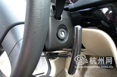另一个加装的装置在方向盘下方,这是一个油门刹车操纵杆,拉为油门,推为刹车,也就是说,对残疾人来说,油门和刹车都可以通过手上来操控,而不需要脚踩油门刹车了。