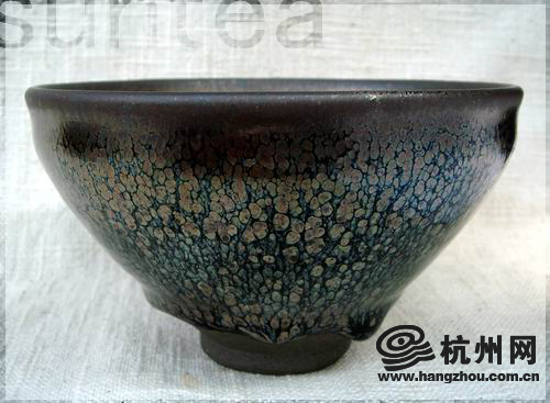 “曜变天目”盏油滴分布;松散。均匀,自然。