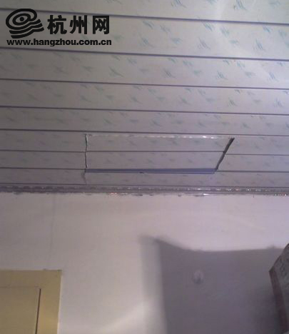 “这就是我房间里的那个天花板被破的地方,小偷还是挺仔细的,居然把破的地方给尽量补回去了。”(照片由网友袁先生提供)