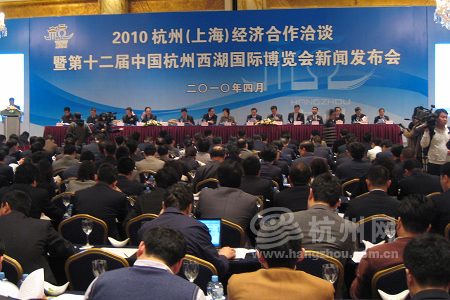 上午10点40分,2010杭州(上海)经济合作洽谈暨第十二届中国杭州西湖国际博览会新闻发布会在上海浦东香格里拉大酒店隆重举行。