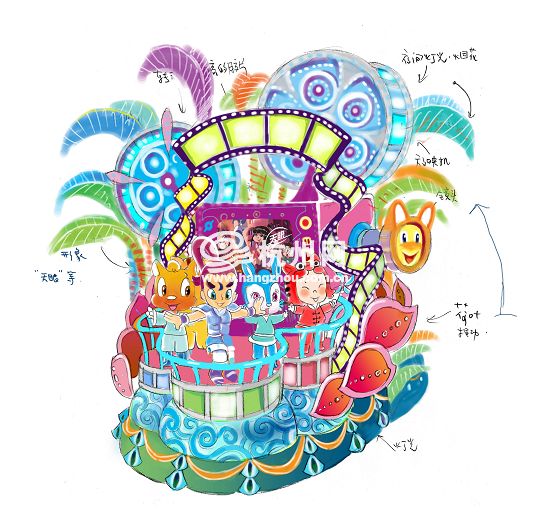 明天,彩车巡游彩车总设计师、国内著名的漫画家聂峻将做客杭州网。为了配合会客厅节目,聂峻更是拿出了“私家珍藏”的彩车设计手稿,“明天我还将我的全套设计秘笈告诉网友们”,聂峻卖了个关子,想要知道这些极富创意的彩车是如何诞生的么?关注明天下午14:30的杭网直播,聂峻将亲自告诉你。