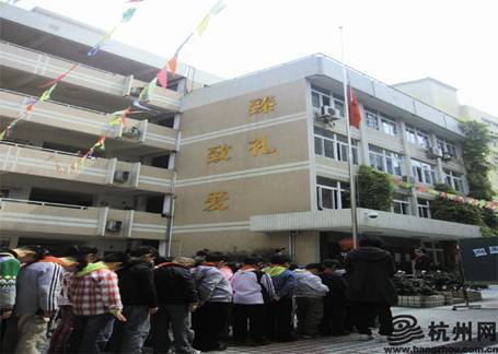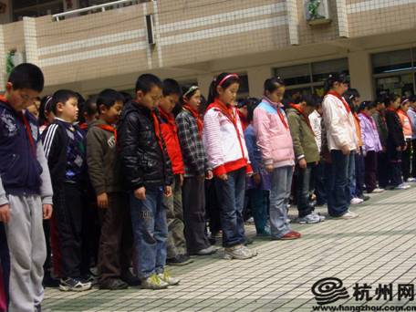杭州网讯 今天是为玉树震区祈福的全国哀悼日,杭城各地也纷纷参与到这场纪念活动中来。早上十点,杭州长江实验小学的老师和孩子们准时到操场集合,进行主题为“向玉树祈福”的哀悼活动。
