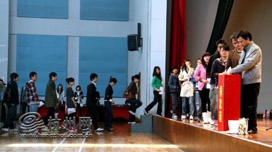 浙江传媒学院学生在前几日已经自发举行了捐款活动,周二下午,还举办了应急救援大赛。今日上午10点,浙传影视艺术学院09编剧班在教室里也举行了哀悼活动。每一位同学手捧蜡烛,朗读《生死不离》。 |