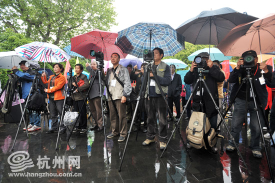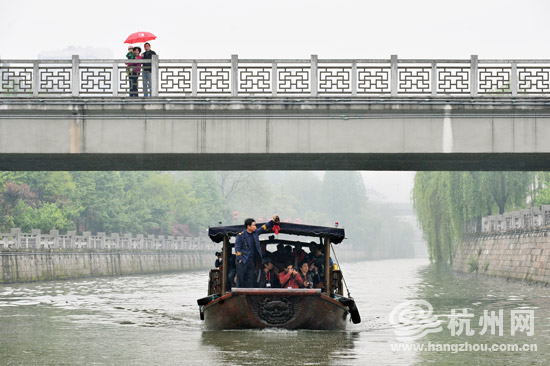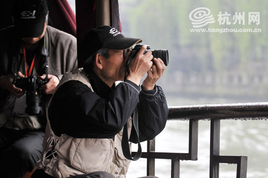 杭州网讯 4月26日上午,“精彩拱墅·魅力运河”大型摄影创作系列活动在拱宸桥畔“京杭大运河南端”石碑前正式启动,由近百名杭州市摄影家协会十佳摄影家、省市媒体专业摄影记者及市民摄影爱好者组成的摄影团队,冒着绵绵春雨参加了启动仪式,并搭乘运河漕舫沿上塘河流域开展了首次集体采风创作活动。