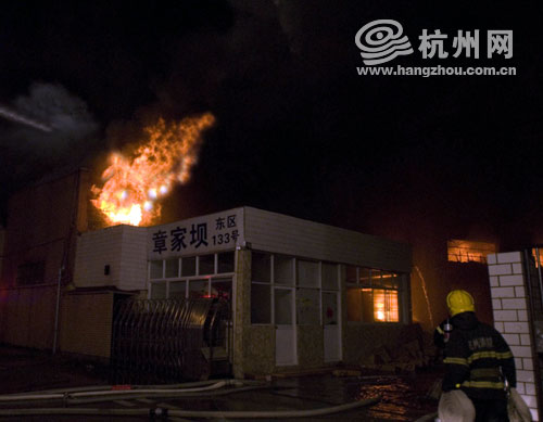 杭州江干区章家坝东区133号一仓库库房发生大火。