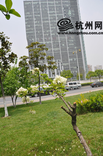 今天下午,杭州网热线QQ200900571接到网友江先生反映,之江路(杭州文化广播电视中心新大楼东侧)钱塘江大堤绿化带里的绣球树被砍了。