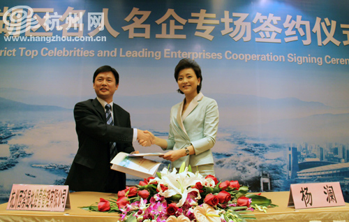 仪式上,西溪湿地公园管委会办公室主任张文炬与阳光媒体投资控股有限公司董事局主席杨澜签约。今后阳光媒体集团将结合西溪的环境,针对都市白领女性举办沙龙和俱乐部,并以杭州和西溪为基地发展绿色产业,以高级论坛及制作播出电视节目的方式探讨新的生产方式和生活方式。同时还将通过上海将中外文化的交流活动落户到杭州。