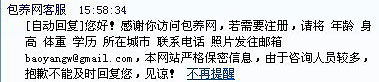 BaoYangW:你放心吧,很多女孩都发了,不发我们怎么给你介绍呢?我们保证不泄露,而且我也担心家长找我们麻烦。真的泄露了我们那么大个网站在那里,可以赔偿你损失。