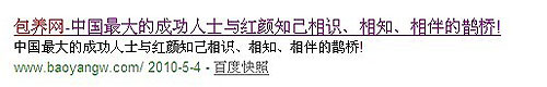 百度搜索页面对“包养网”的描述是“中国最大的成功人士与红颜知己相识、相知、相伴的鹊桥!”
