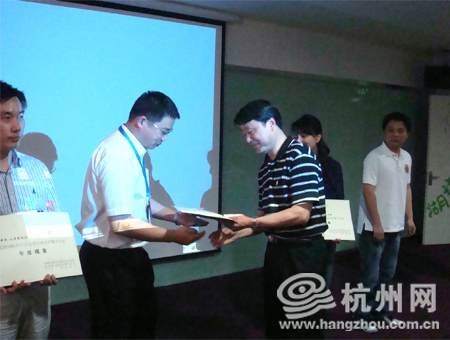 杭州市科技局局长楼健人为获奖单位颁奖
