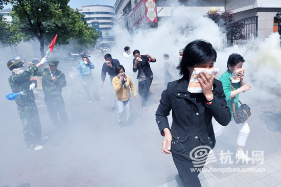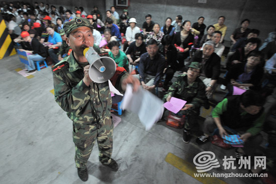 今年为了纪念5·12汶川地震,市人防办首次联合杭州市各个社区进行大规模的集中防空防灾演练。“今后这样大规模的防空防灾演练还是会每年进行,主要是不断提高居民应急自救的能力。”