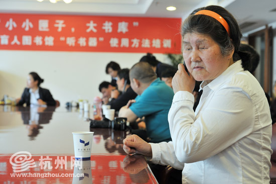 杭州网讯 今天是是全国第二十个助残日,浙江省图书馆推出“听书器”外借服务,吸引了众多视障读者的关注,今天上午,数十名视障读者在浙江图书馆二楼会议室参加了“听书器”使用方法培训,并借出了首批听书器。