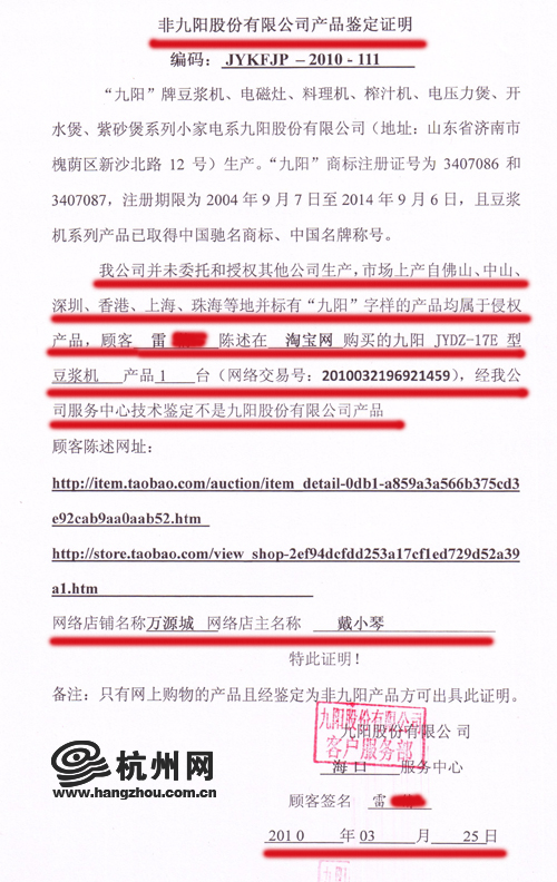 《淘宝网上屡购假九阳豆浆机》追踪报道