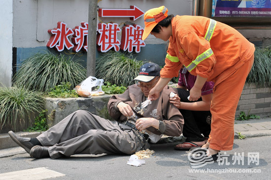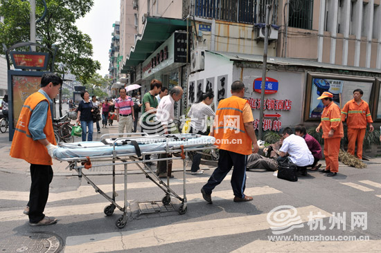 杭州网讯 杭州的阴雨天终于告一段落,从昨天起杭州正式入夏,这气温也随即飙升,昨天最高气温已达到31℃。今天依然热度不减,中午时分,武林路昌化路口,一位老伯吃不消马路上的高温,走着走着突然摔倒在地。
