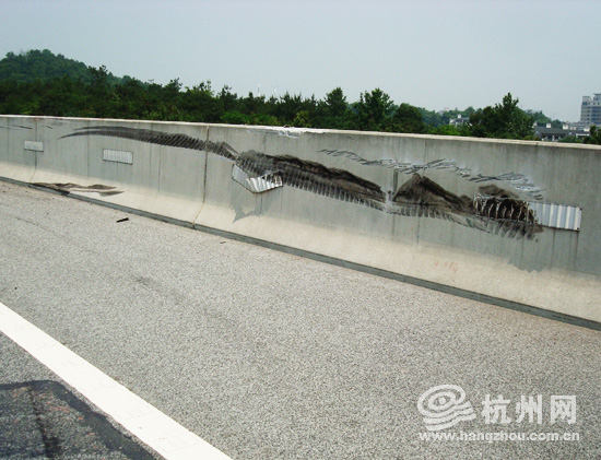 槽罐车在高架护栏上划出的痕迹。