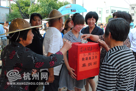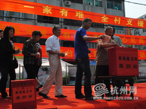 杭州网讯 2010年5月25日下午,为了救助同村24岁的女白血病患者陈卫玲,浙江温岭市市洋河村举行了全村捐款动员活动,数百位村民和企业主伸出了援助之手。