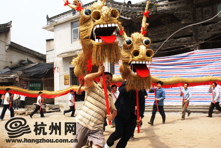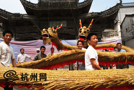 昨天,杭州网记者驱车三个小时,来到汾口镇赤川口村,村中心的余氏家厅门前,两条金龙盘卧,仿佛一声惊雷,就要飞天入九宵。