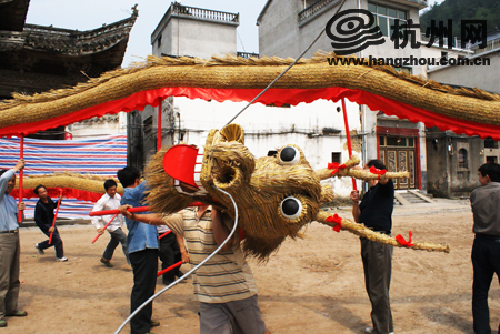 每年八月十五前,村民们每家每户都会自觉地送出一捆干稻草,编草艺人收了去,首先是“叠龙头”。