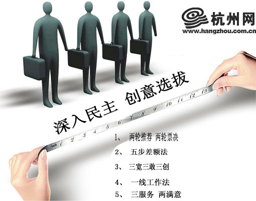 临安市市委组织部部长何凌超介绍说,从2009年开始,临安市对竞争性选拔干部方式进行了多层面、多类别的探索创新,采取“两轮推荐、两轮票决”、“五步差额法”、“三宽三敢三创”等新型选拔模式,以极富创意的选拔模式,扩大了基层民主队伍,强化干部队伍修养。