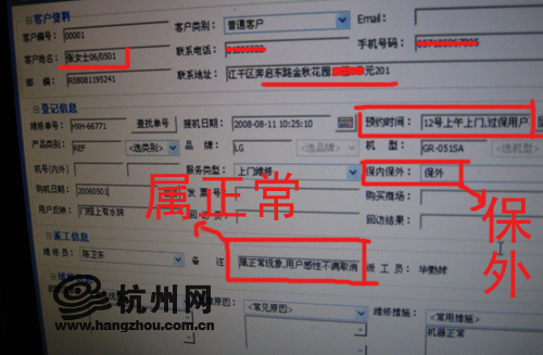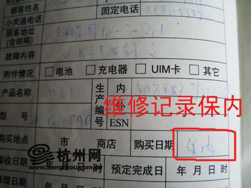 维修人员填写为保内