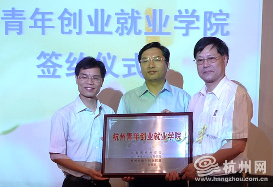 活动现场李忠誉书记代表团市委、杭州大学生创业联盟与浙江大学继续教育学院签署了成立杭州青年创业就业学院的协议。蔡永波书记代表团省委向两家单位授予以了“杭州青年创业就业学院”的牌匾。作为一个公益性的青年创业就业培训组织,杭州青年创业就业学院的成立,意在于形成一套完善的创业培训体系,培育一支优秀的创业青年队伍,打造一个健全的交流沟通平台,孵化一批成功的青年创业企业,从而为切实推动杭州建设“创业创新城市”提供保障。