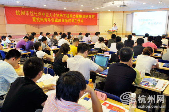 杭州网讯 7月3日,杭州青年创业就业学院成立仪式暨优化创业型人才培训班第二期开班仪式在浙江大学玉泉校区永谦活动中心一楼报告厅隆重举行。团省委副书记蔡永波、团市委副书记李忠誉等领导以及优化型人才第二期培训班的80名学员,共同参加了此次活动。