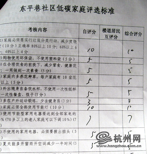 东平巷社区与科技馆的专家制定的低碳家庭评选标准。