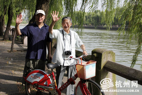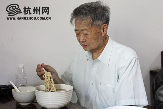 骑游运河后,86岁的罗老还兴致勃勃地来到运河沿岸的一家桥头面馆品尝起运河的“板凳面”,参观了运河三大博物馆。