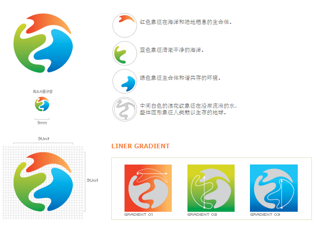 丽水世博会会标——2012年丽水世博会会标将有机形态(红色代表生态系统,蓝色代表海洋,绿色代表环境)抽象化,充分体现了2012年丽水世博会的主题——生机勃勃的海洋和海岸。整体圆形设计代表地球,其内部的3个动态花纹具有面向未来的象征意义。