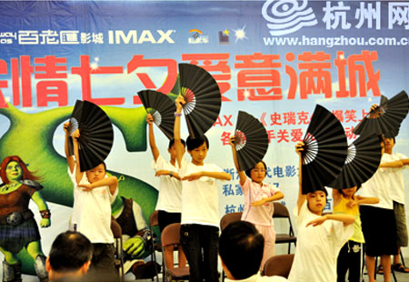 万象城百老汇IMAX影厅首映 杭网义工夏令营的小朋友与“史瑞克”面对面